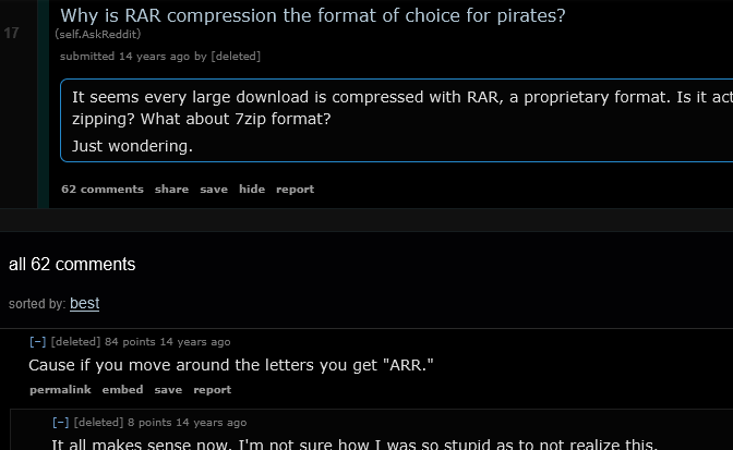 Thinking about how fortunate it is that when Phil Katz invented the most ubiquitous compression format in history, he called it "Deflate". Easy to remember and apt. Meanwhile, every compression format created after it is some substring of LZWSSMA78265.