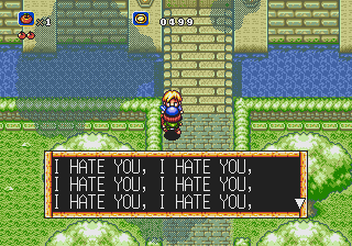 "FROM YOUR BIRTH, YOU WERE ALWAYS GOING TO DIE HERE. LAMENT NOT, GOOMBA, FOR FATE IS FIXED AND CRUEL" appears above Mario instead of "100".