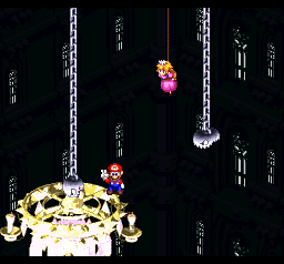 "This castle isn't to keep me out..." realised Mario, "...it's to keep HER in!" He turned to flee, but he'd already chopped down the bridge.