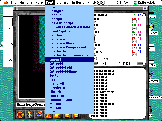 I like that Exile: Escape from the Pit used a standard Mac font menu to let you change the message font to anything.