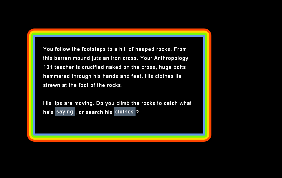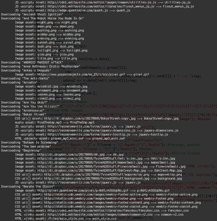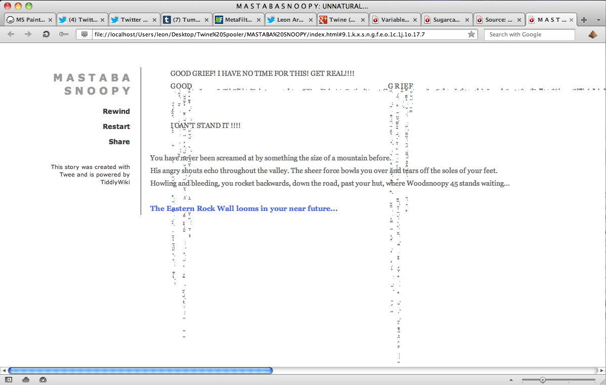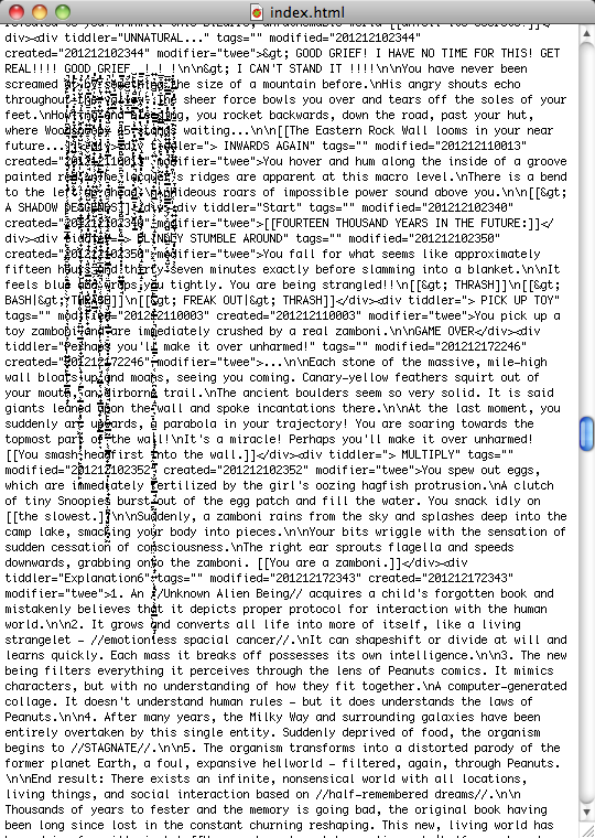 http://l.j-factor.com/twine/ - I noticed I ought to put my Twine code on my actual personal home page as well. Starting with the macros for now.