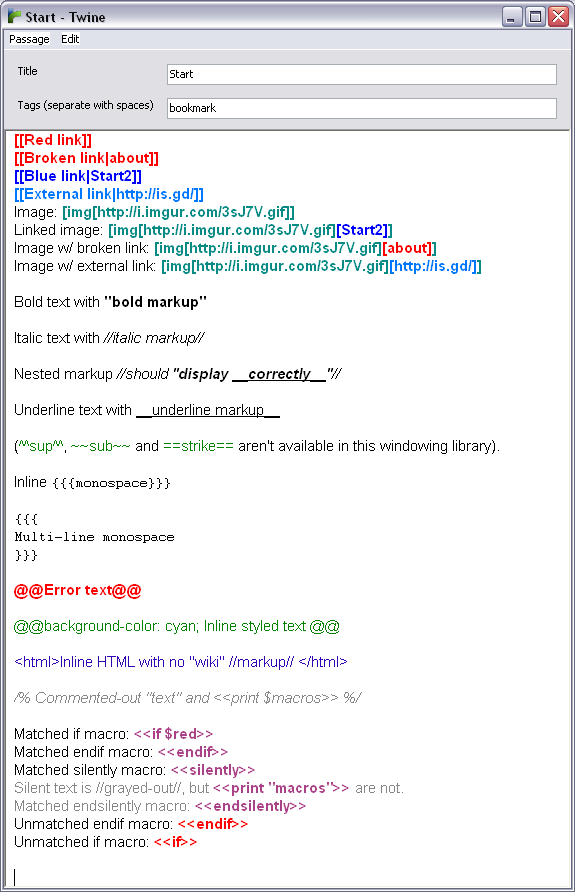 (All of the stuff in that picture (except for the @@ inline-styled text @@) is already valid Twine syntax that isn't currently highlighted.)