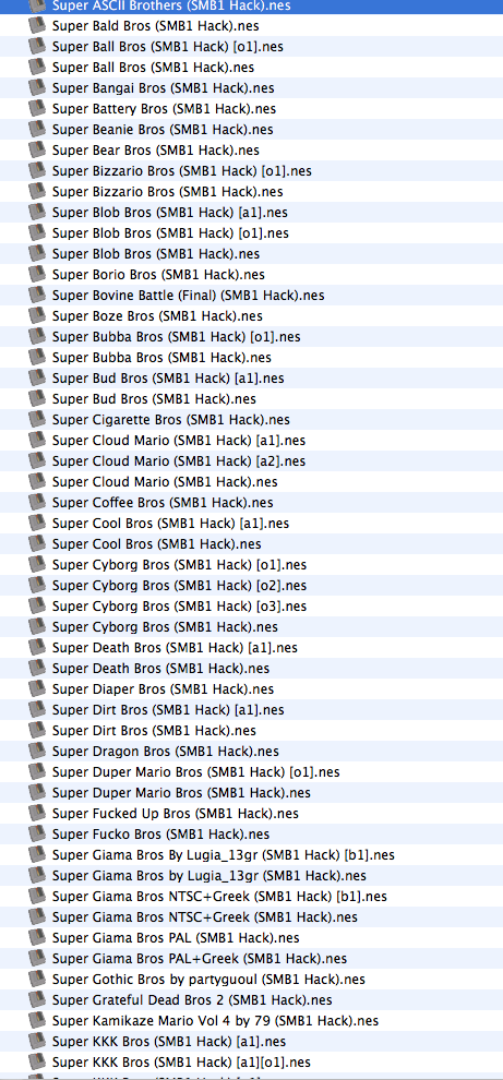 The 300-in-1 cart begins to run out of fake names for Super Mario. "Firefighter 3". "Head Wound Man 2". "Yellow Santa 5". "Escaped Clown 7".
