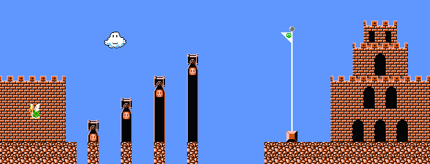 The final staircase in 8-3 of Super Mario Bros, oft hailed as a deeply meaningful moment in the game.