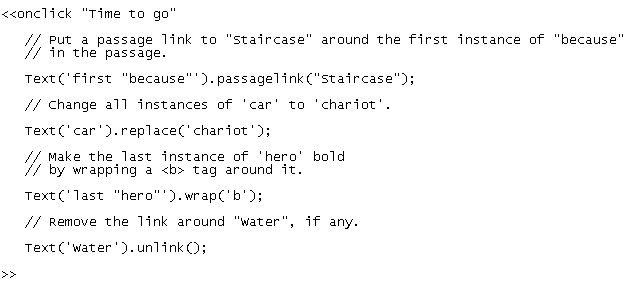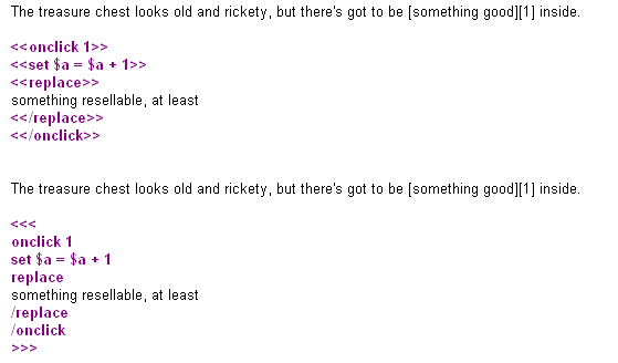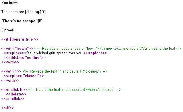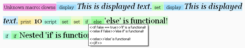 Working on some code that may hopefully end up in Twine 2. This is a 'debug stylesheet' that shows macro usage.