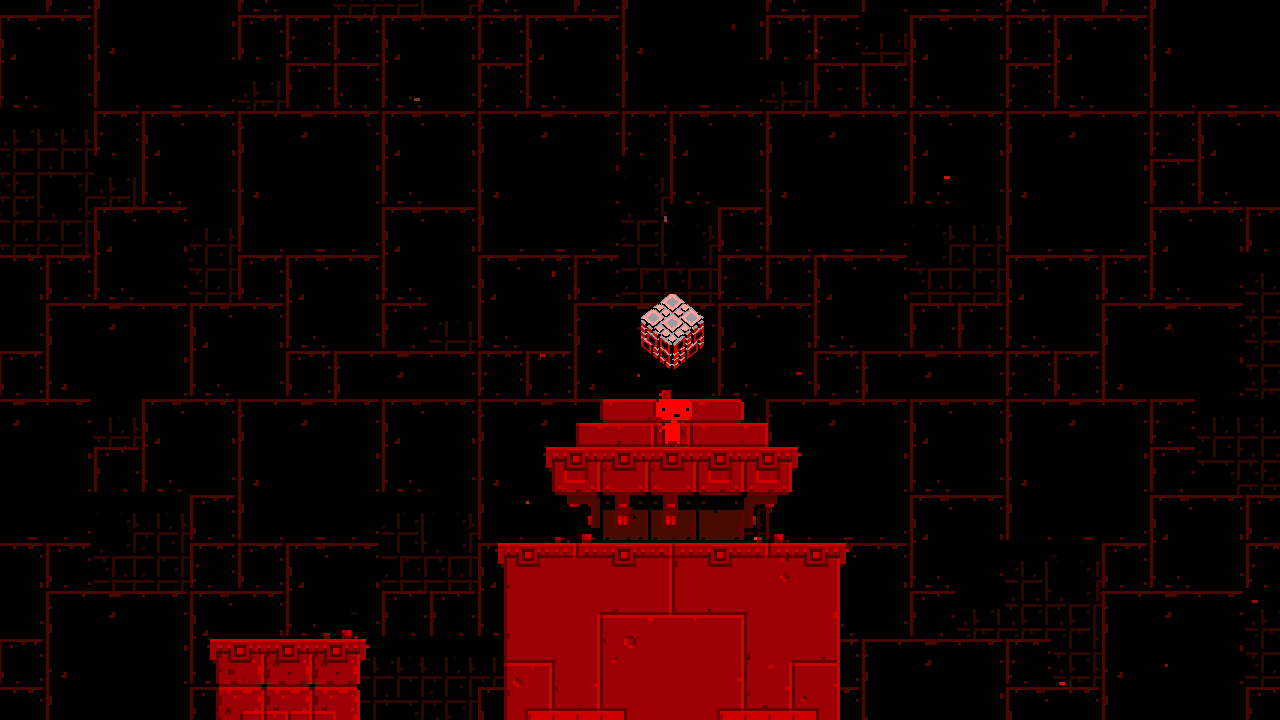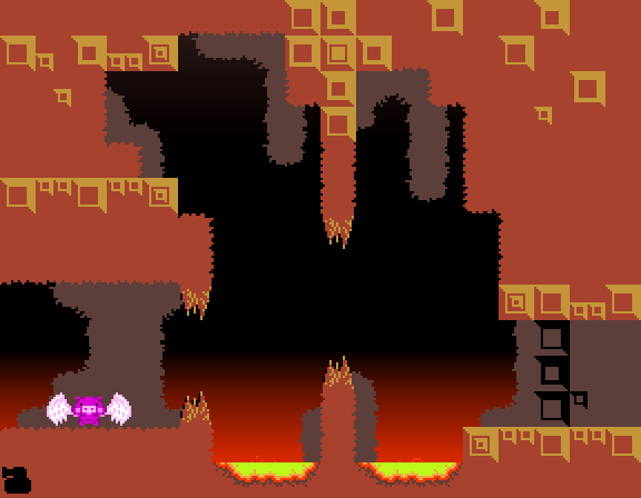 The hero drops the ice cube into the pool of lava, cooling it back into water. One refreshing swim, and she's on her way to the next puzzle.