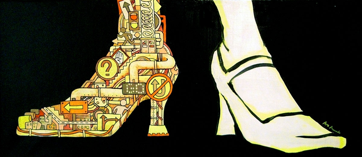 The red that used to be in the Nintendo logo meets the stripes that used to be in the Apple logo on the street. They nod as they pass by.