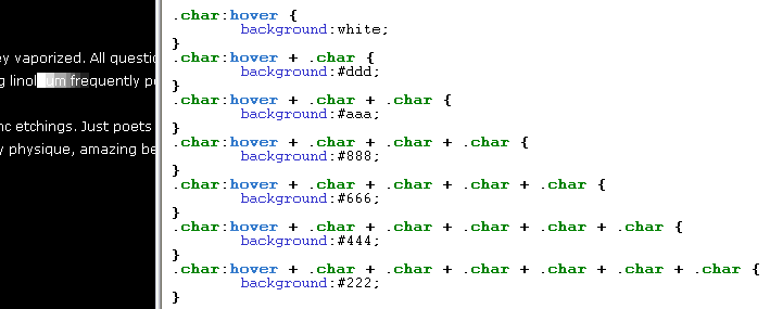 I can also style all subsequent letters beyond the mouse's location, but, still, I must question its utility…