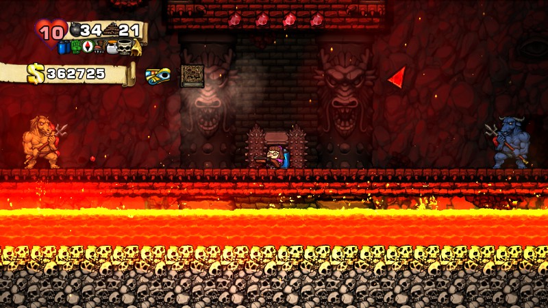 The one moment I really like in Spelunky HD's Hell sequence is having to use Olmec as a lava platform to enter the Hell doorway.