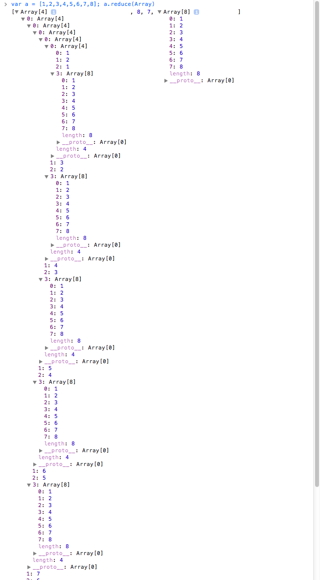 Inspired by this https://twitter.com/jcoglan/status/445686532327104512 I kind of like the pattern that results from [1,2,3,4,5,6,7,8].reduce(Array)
