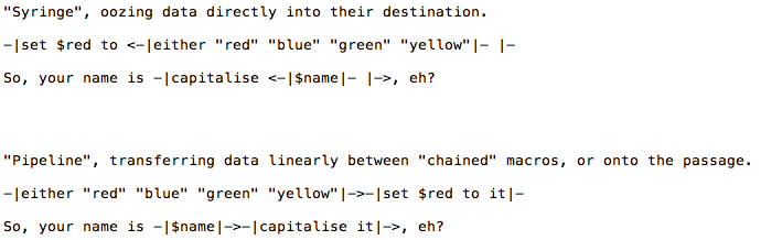 (That "capitalise" case in there is actually a problem I've been mulling over for awhile - how to elegantly transform <<display>>ed text.)