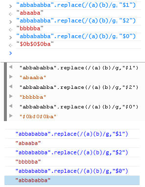 Another implementation-defined thing is what happens when "$0" is in the replacement of a string's .replace()