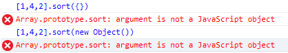 In Chrome, [1,4,2].sort({}) is treated as identical to [1,4,2].sort(), whereas it throws in Firefox and IE 11.