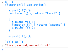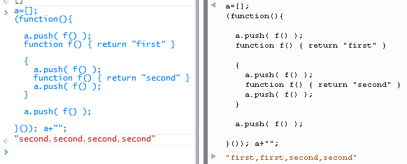 In the IE/Chrome semantics, every function within the scope is hoisted, regardless of location – not too useful, but easy to understand.