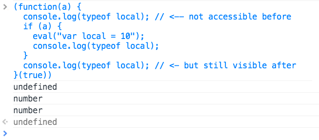 (For the record, using "use strict" will shut down the ability to create vars with eval(), and puts an end to this nonsense.)