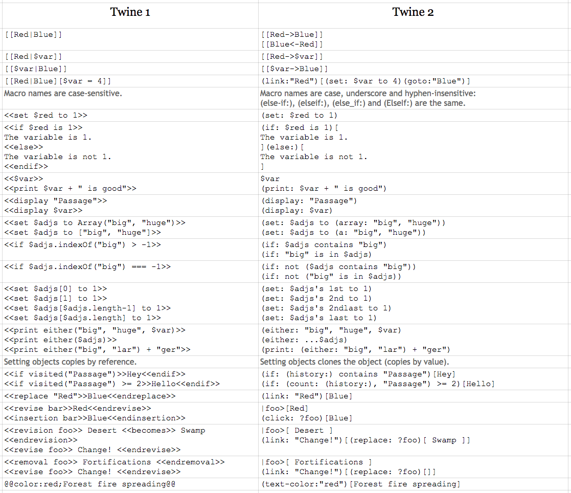 I've been trying to make structures like arrays and maps a bit more usable in Twine 2, compared to the plain JS that Twine 1 fell back to.