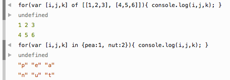 for(var [i,j,k] of [[1,2,3], [4,5,6]])