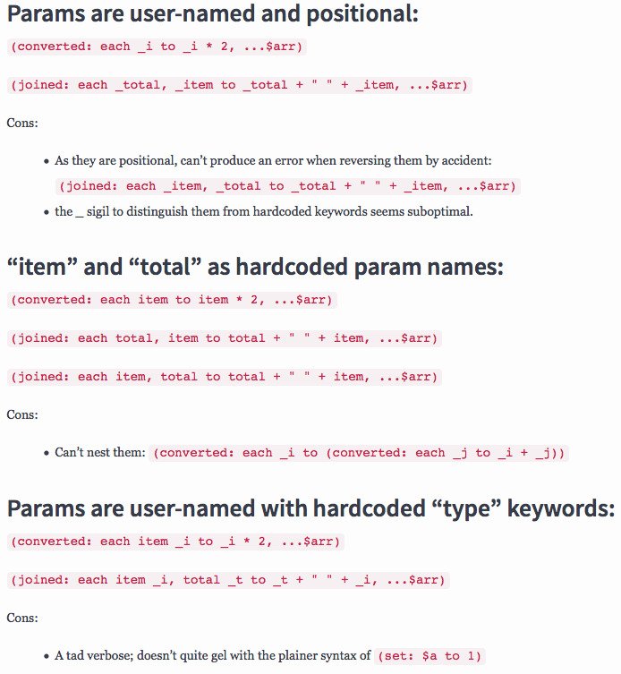 I'm currently getting myself in a tizzy over designs for functional programming lambda parameters in Twine 2.