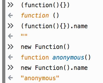 Also, I find it funny that "function() {}" creates an anonymous function, but "new Function()" creates a function *named* "anonymous".