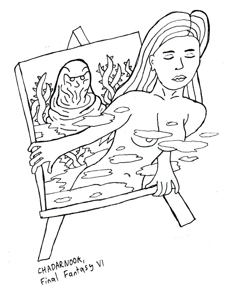 "What?" "Every time we look away from this woman, more of her body turns into garbage." "Eh, let's spin around and get it over with fast."