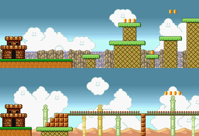 The mistake is, they made these pretty backgrounds for the x-3 stages of Super Mario Bros.… but used the wrong one for each!!