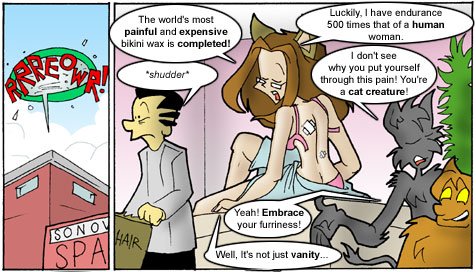 BTW, the context here is that whenever she turns into a werecat, she has to get all her fur waxed off in order to "change back".
