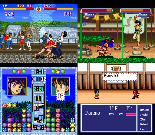 *opens SNES emulator* Let's see… do I play the Ranma ½ fighter, the Ranma ½ fighter, the Ranma ½ action puzzler, or the Ranma ½ RPG