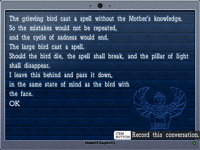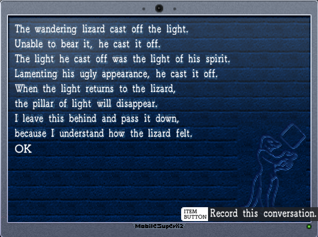 Most of EarthBound's quest NPCs are written with variations of this inept, duplicitous voice… verbose, but not oversold or repetitive.