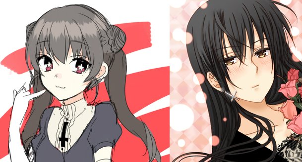 http://www.pixiv.net/member_illust.php?mode=medium&illust_id=42299673 – This is the artist's two yuri OCs, versus… male versions of the same? Hmmmmm… *humming slowly grows in enthusiasm*