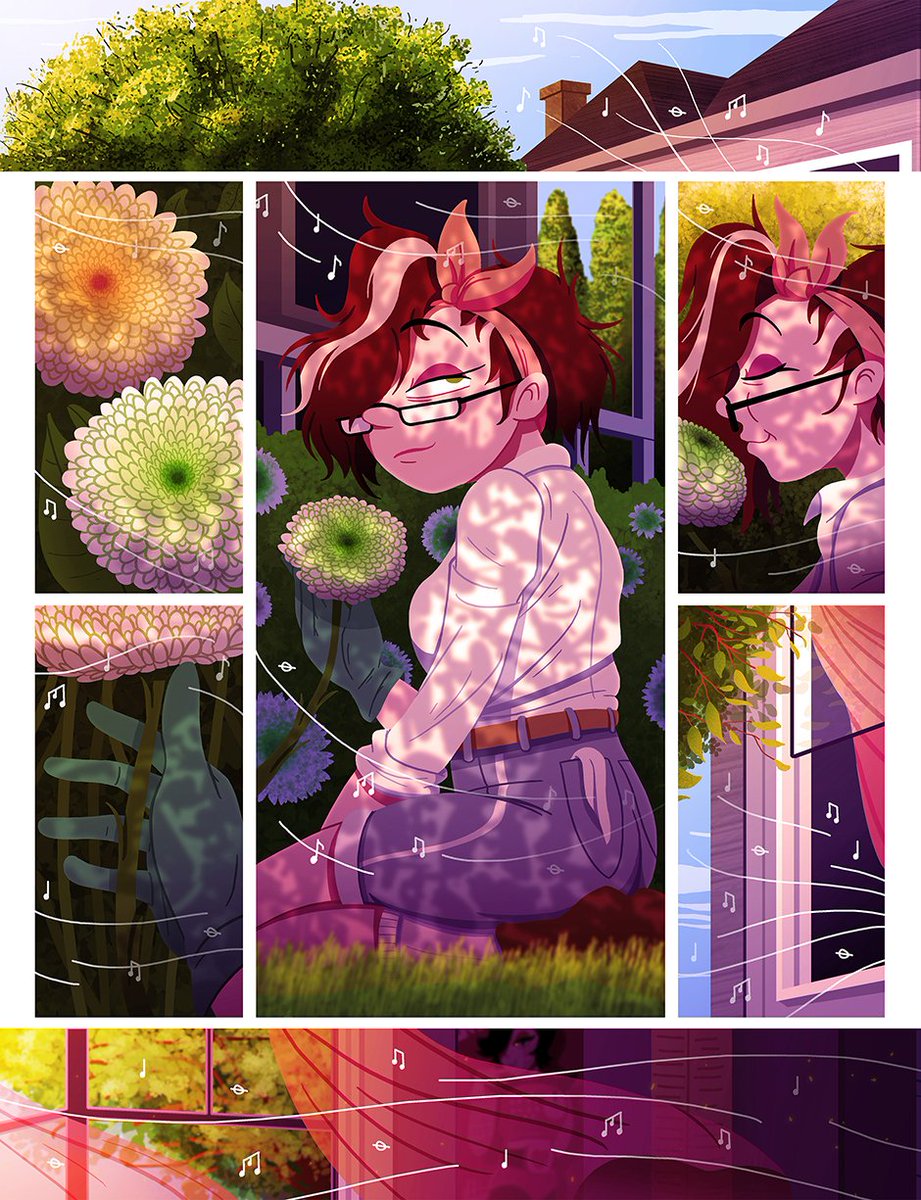 http://melodicacomic.com/ – This comic has pretty great colouring, design and composition, but the writing isn't really there yet.