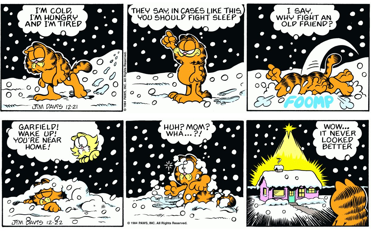 I should add, this story arc's enchanting air is heightened by its climax, where Garfield is hopelessly lost and nearly dies in the snow on Christmas Eve.