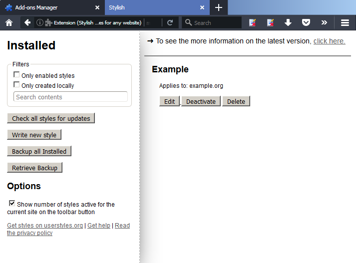 After checking thoroughly, the opt-out checkbox labeled "Send anonymous data to Stylish developers" described in Stylish v3's privacy policy does not seem to be in this options pane.