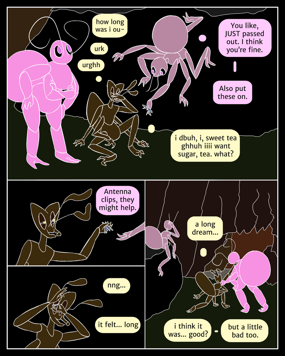 https://archa-ants.tumblr.com/ – Someone linked this cute psychotropic ant hivemind comic awhile back, and I'm all in on it.
