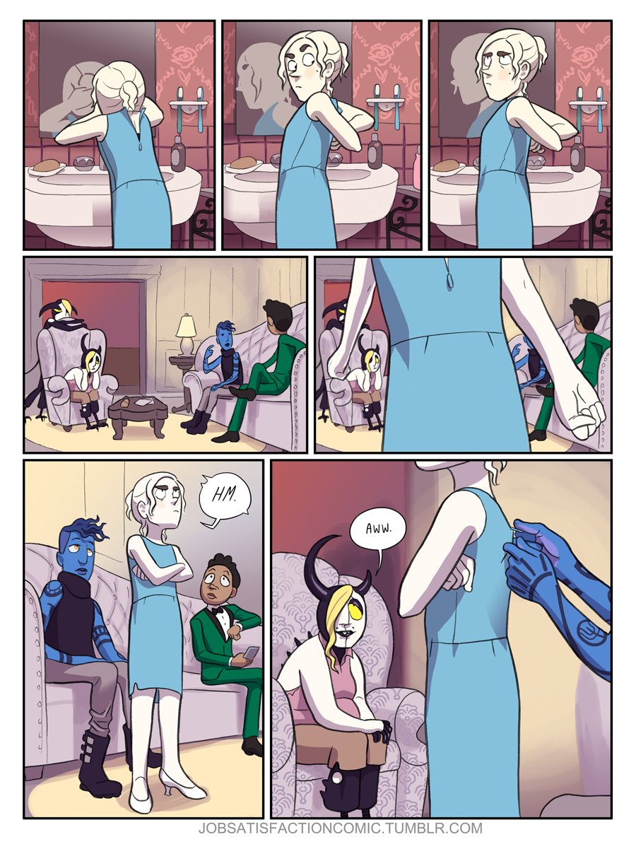 http://jobsatisfactioncomic.tumblr.com/ – This one's characters and plot are a little thin… to the point where I wonder what this comic's "about"… but I like the designs.