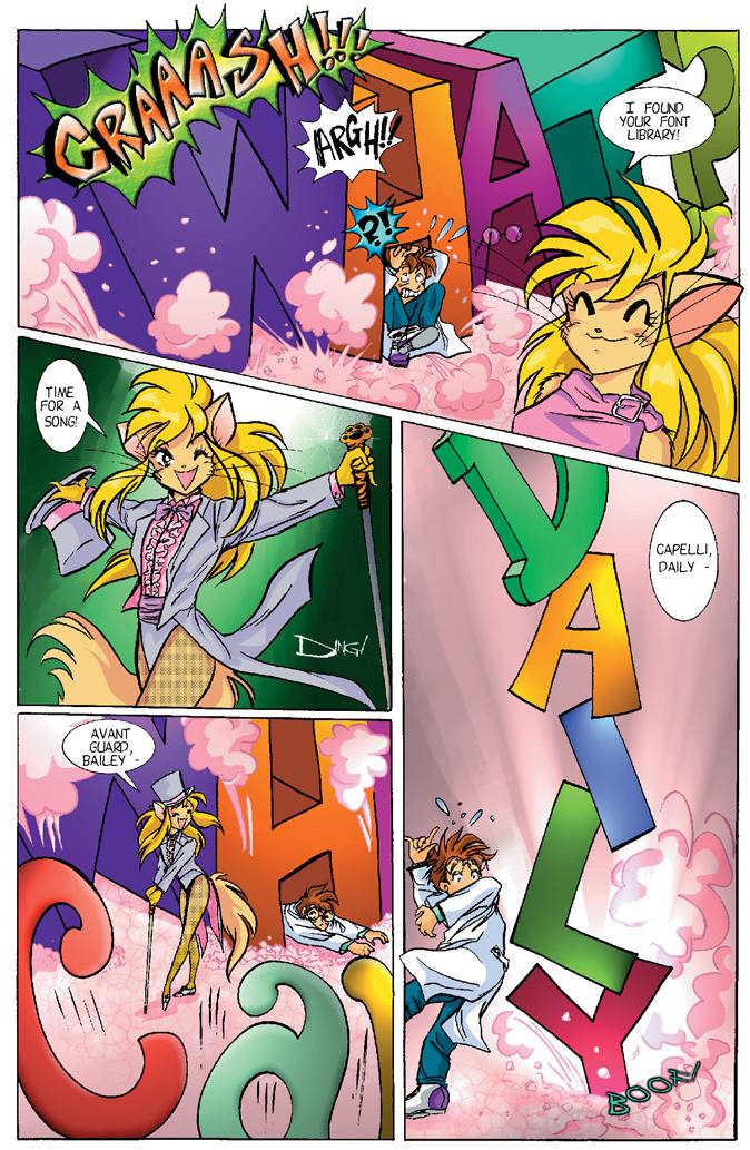 Girl with giant mallet, but when she slams it down on you, you find the head is a hollow drum containing a sign reading "MEND YER DANG WAYS"