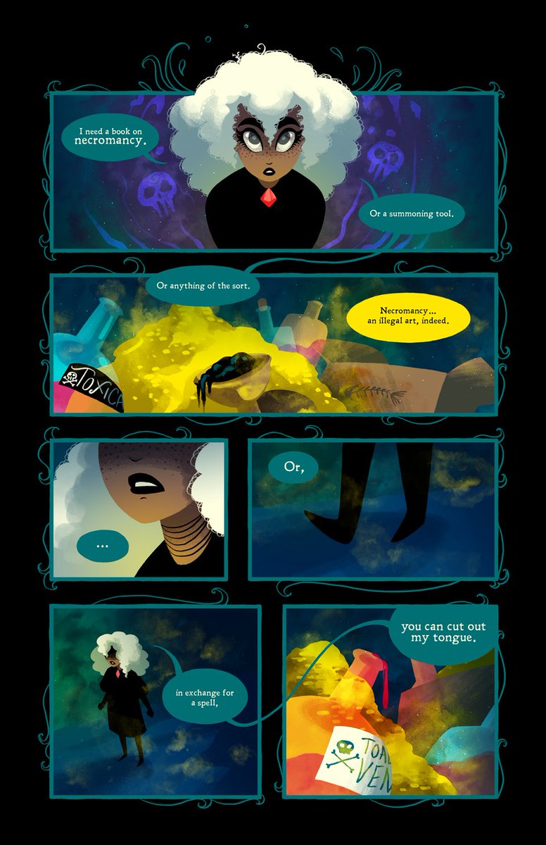 http://thefairytaledead.com/?webcomic1=prologue-snow-white-is-dead – This comic, whose survival odds doesn't look too good, nonetheless has some pretty well-illustrated exposition and nicely tense scenes of magical negotiation.