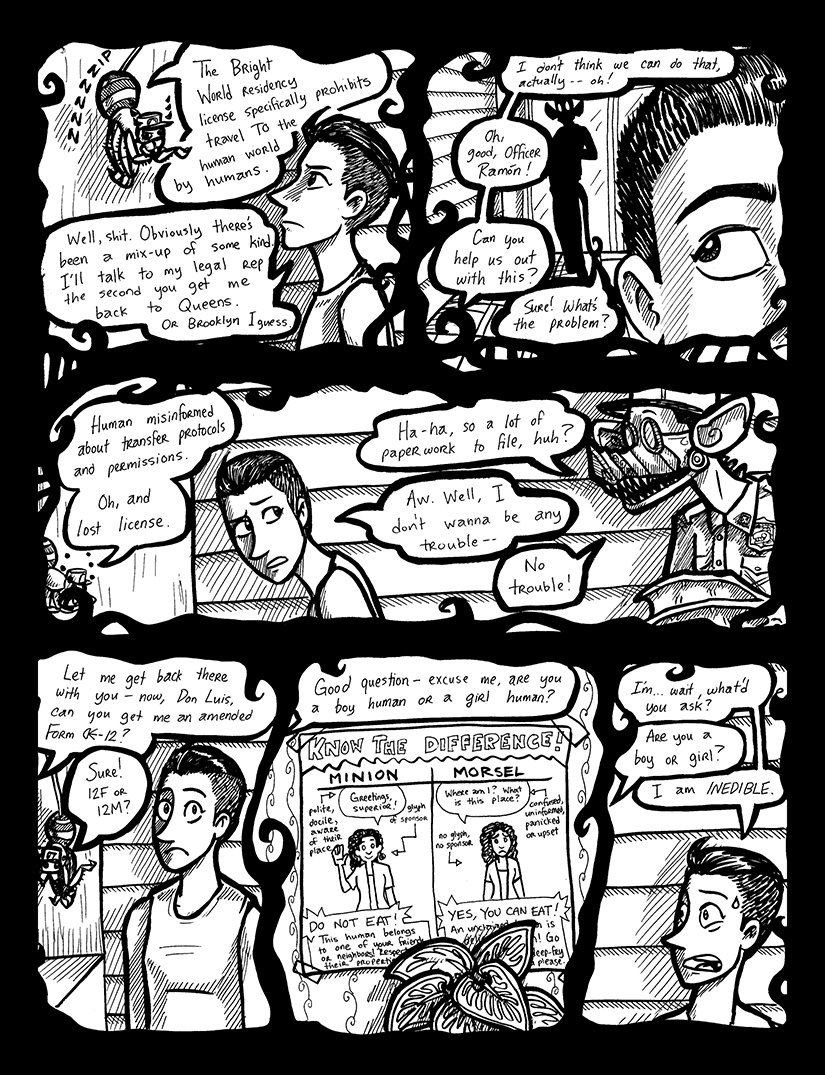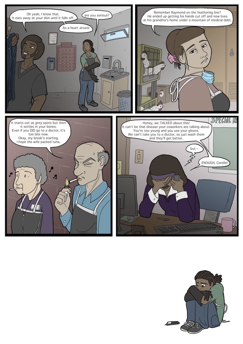 I like how so much of this comic is centered around frantic bargaining for the slightest of freedoms with manipulative, predatory employers, and how such a depressing premise is kept moving by its relentlessly upbeat, mule-headed protagonist.