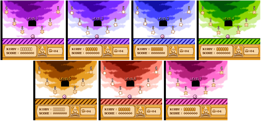 * Loosely reskinned/palette-swapped environments for the entire last world