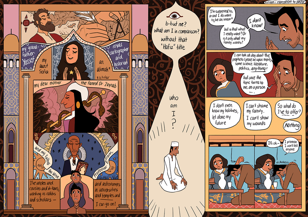 http://alcottgrimsley.com/comic/cvicover/ - This comic (a spinoff of another in a different genre) is about a Turkish carpet merchant who becomes a vampire. Though a little slow-paced, it has fittingly artful paneling and designs, and indubitably human emotions.