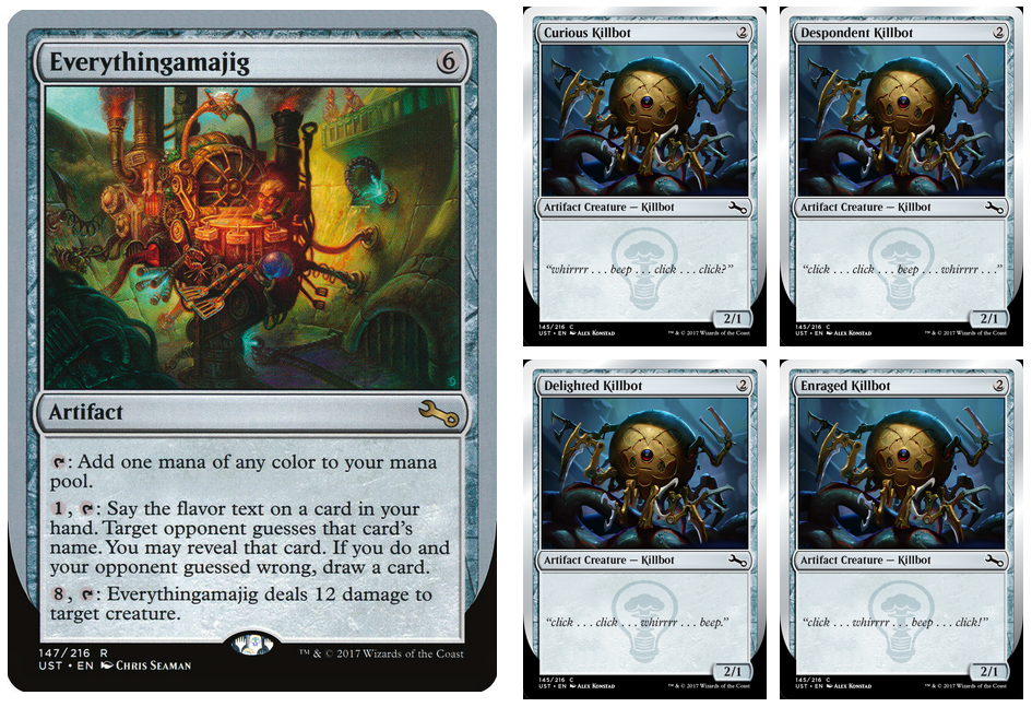 I'm going through the recent MTG parody card set and seeing what sort of joke combos were hidden in its design. Pretty confident about this one.