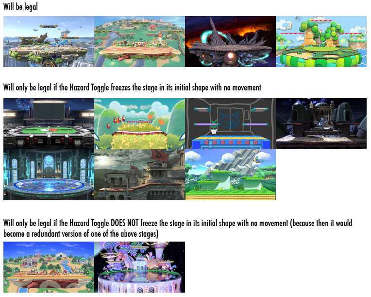 Regarding the bottom row: I am very confident that high-end 1000+ player tournaments will NOT permit the error-prone ritual of turning hazard toggle on and off whenever you pick those two stages, instead of just removing them outright.