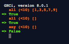 Unable to recall what these basic functional-programming functions should do when given a predicate but no values, I consulted the expert.
