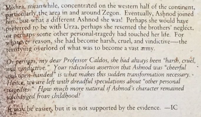 Thinking about the 1994 MTG expansion "Antiquities"… not only was it the first set with a self-contained story, but the story's framing had a surprising awareness of it being told on randomly-distributed cards.