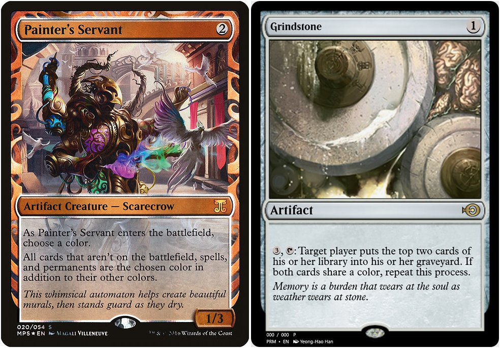 This one to me feels a bit too blunt, too lopsided… Grindstone itself isn't a very complicated card, designed to crush mono-coloured opponents even without aid, and this combo just gives it the grease its design implicitly calls out for.