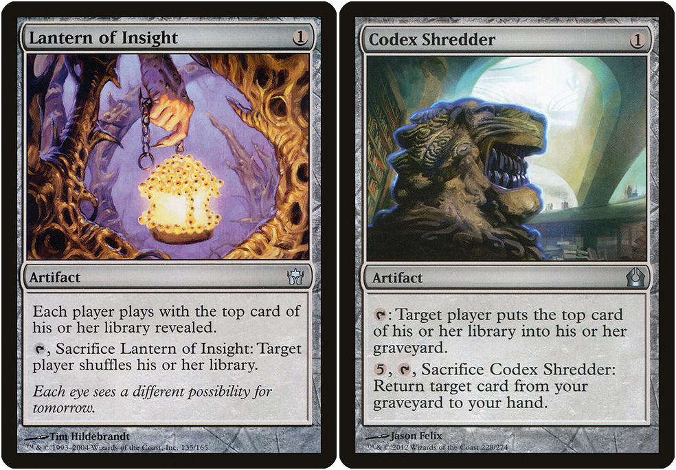 I like this one's constant supervision component: any time their next card is remotely good, use your Shredders before they get it. Interestingly, a similar mechanic called "fateseal" was discontinued because it was widely hated: it made no one stronger, only one player feebler.