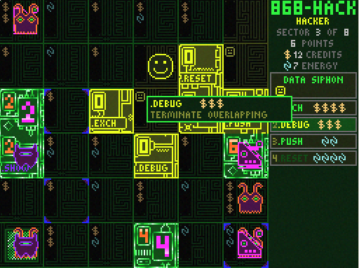 This is a personal one, as I was involved in the game's development, but I love good ol' .PUSH/.DEBUG from 868-HACK (https://store.steampowered.com/app/274700) The whole combo hinges on .DEBUG's cryptic description "TERMINATE OVERLAPPING", and realising how easily you can make things "overlap".