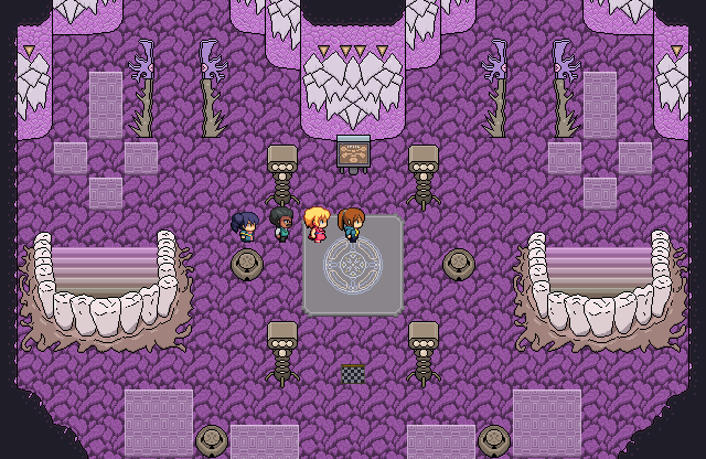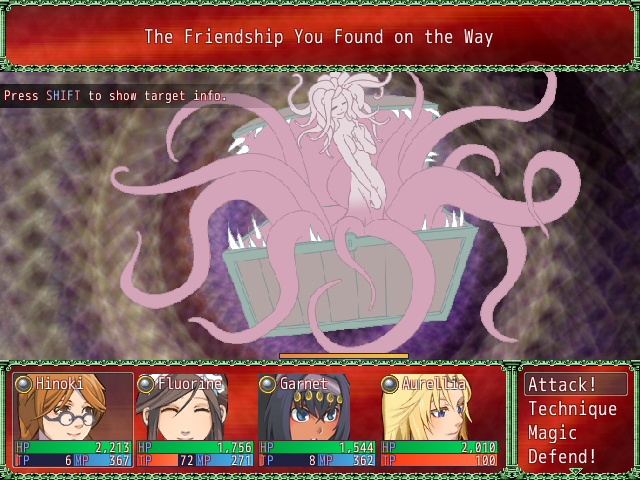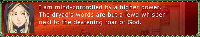 Another warning: it's obvious that this is a "got sick of making the game" release rather than a "final" version. Typos are noticeable, a few cutscene splashes use placeholder or sketch art, a few NPCs have "TODO" dialogue, as well as the aforementioned lategame balance issues.