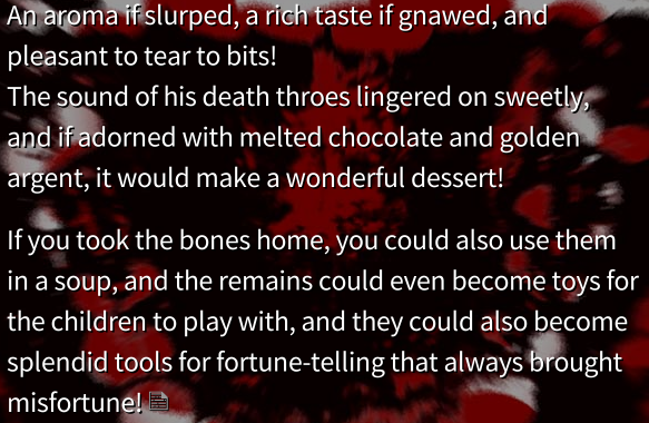 The third-most wince-inducing part is in Strange Creators Of Outer World when Joon secretly possesses Sumireko and makes her drink while underage. (By the way, the only explicitly underage characters – I THINK – are Remilia, Flandre, Sumireko, Eika, Satono and Mai.)