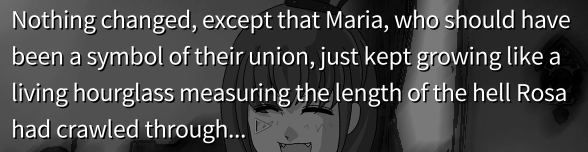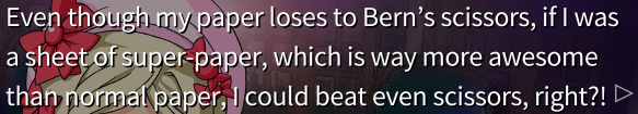What they also get the chance to do is redefine what a VN branch "means" for themselves. In interactive VNs, each branch "means" a choice the player made, but in these games, with their branches snapped off from the decision tree's root, the meaning of them is carefully obscured.