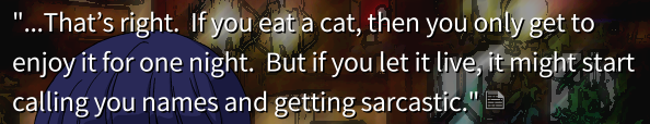 Of course, since Higurashi is a mystery story, having late twists spoiled is 3000% worse than it is for, say, Undertale (a game that nonetheless does take pains to introduce characters and twists with a tailored dramatic flourish).